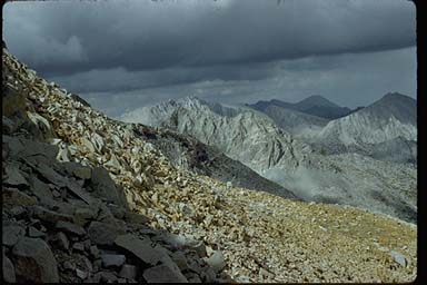 Once down the chute on the eastern side, the impending storm didn't really materialize, and we enjoyed a pleasant hike out to the car at the Mosquito Flat trailhead. Typical of these late season trips (second week of September), once off the Mono Pass trail, we had the entire area to ourselves.