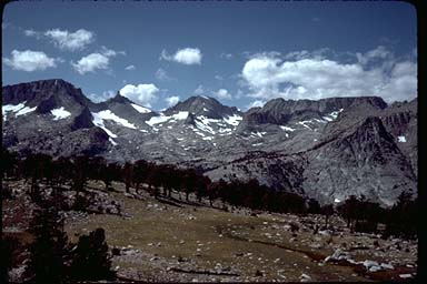 There is a wonderful panoramic view of the Great Western Divide from the ridge between the Kern and Tyndall Creek drainages.